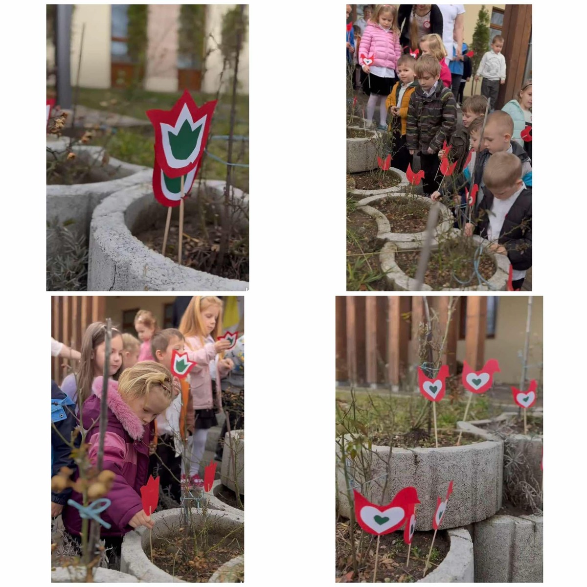 Az ünnepi műsort követően verbunkos táncházzal leptük meg a gyermekeket, majd a héten készített nemzeti színű alkotásainkat helyeztük el az óvoda bejáratához.